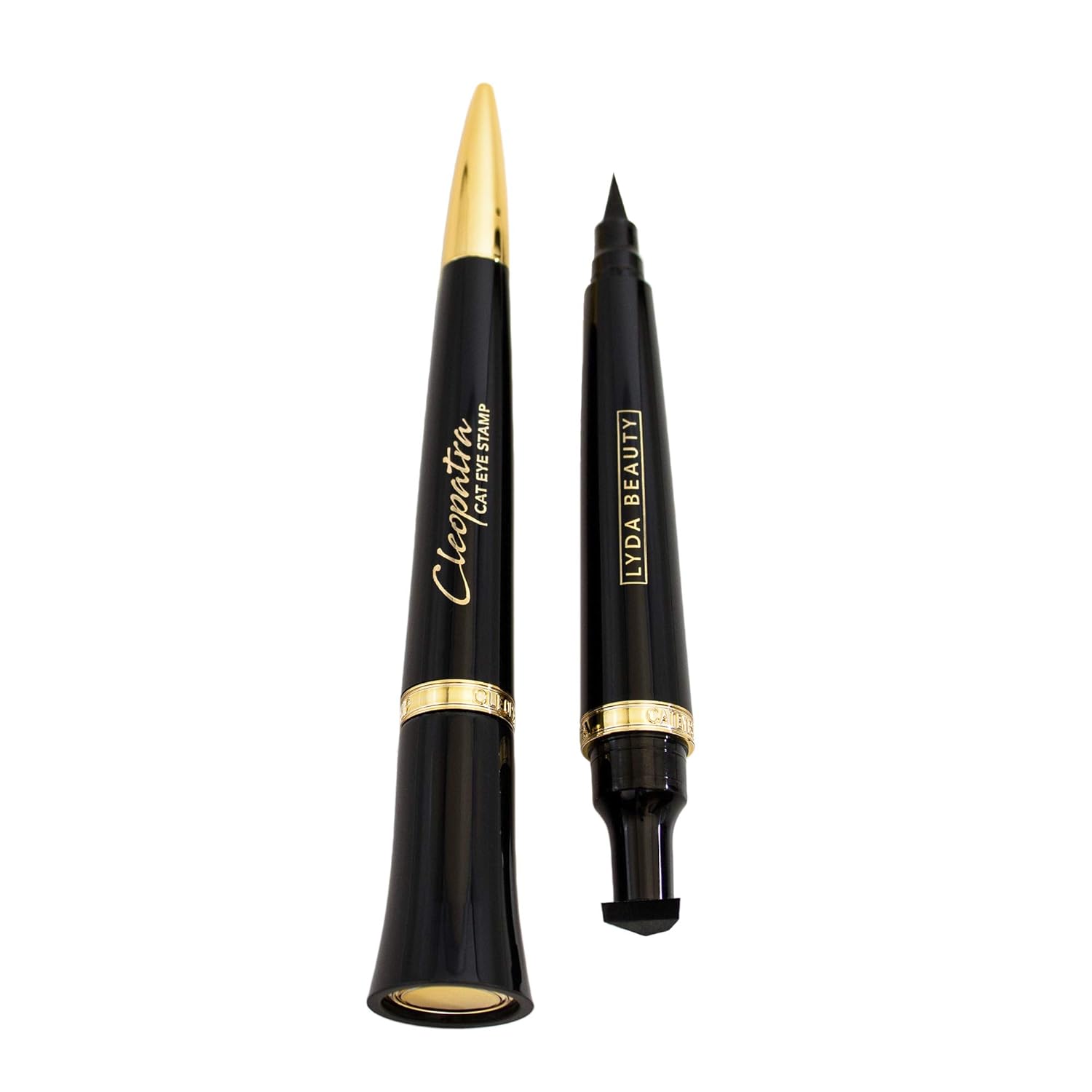 Then the Lyda Beauty Cleopatra Cat Eye Stamp landed on my desk promising to stamp on a bold and even cat-eye in seconds and suddenly I. The brand which is newly Halal-certified and therefore more inclusive got things so so right with this eye stamp. The patent pending device is a compact beautifully shaped applicator that delivers richly pigmented liquid eyeliner to a precisely angled stamp on one end and a fine tipped point on the other.